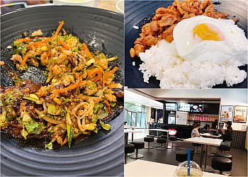 Solid go to Korean bibim rice and noodle bowls. Quick service if you have a Korean cuisine craving . Lots of seating but we got it to go. They also have a cafe bar but did not get anything at the time. Enjoyed the spicy pork and teriyaki chicken bibim bowls. Solid and reliable food.